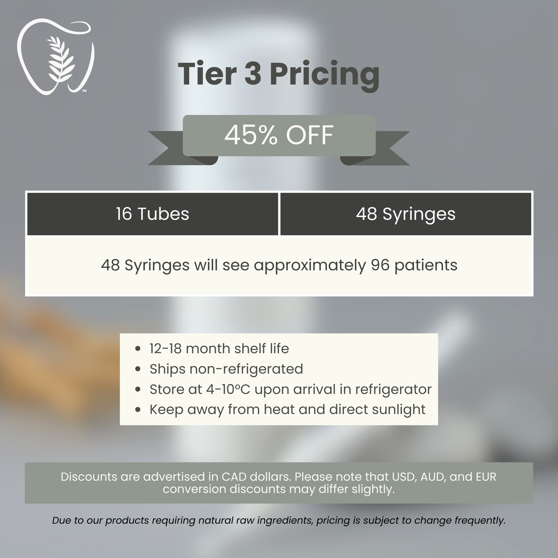 Product Description for Teeth Whitening Providers: This in-office whitening gel is a versatile, universal option suitable for both light and dark staining. Designed to deliver consistent results with minimal to no sensitivity, it is a patient favourite across a wide range of clinical cases. When paired with appropriate equipment, this gel supports efficient protocols and reduced chairtime. Refer to product photos for ingredients, contact times, and tiered pricing.