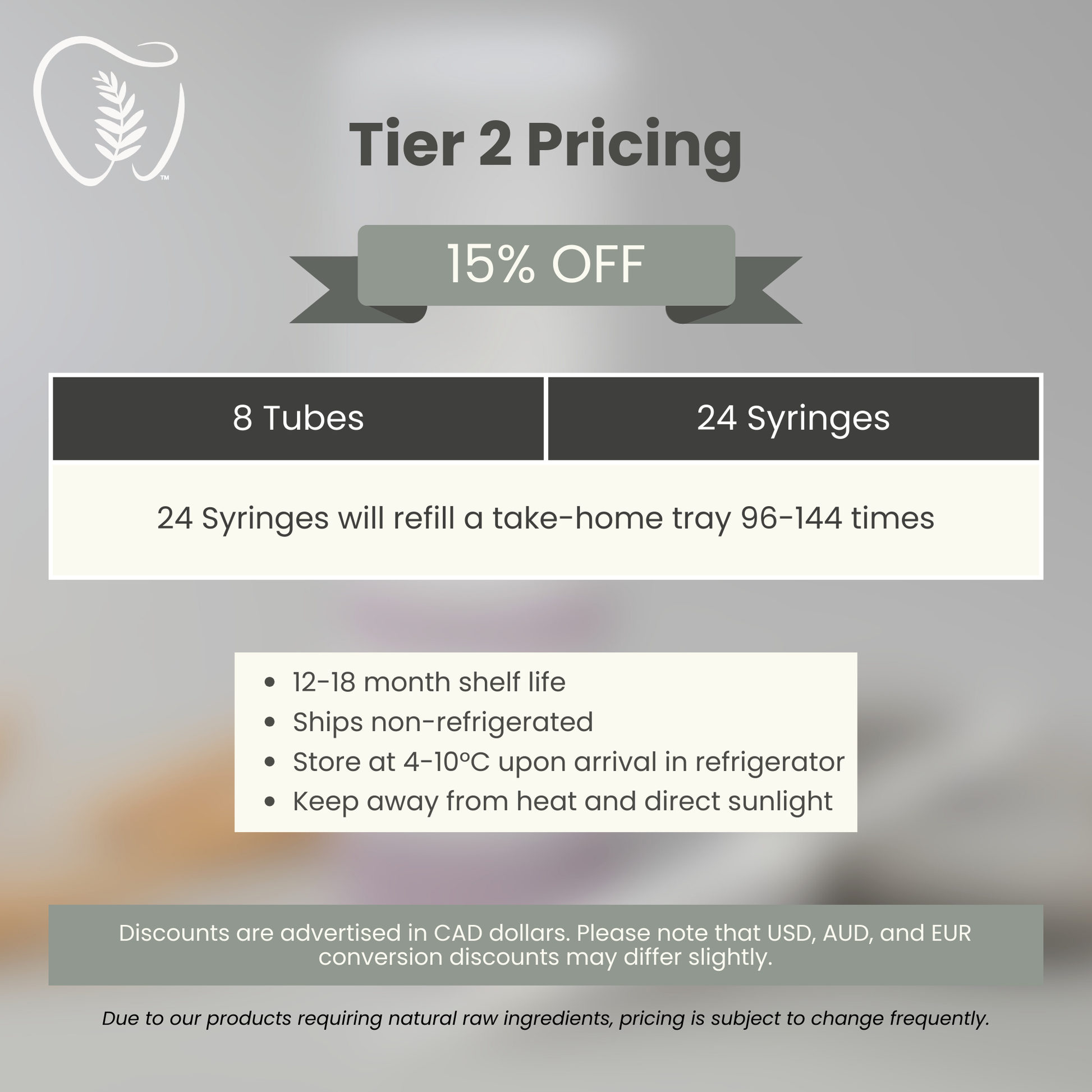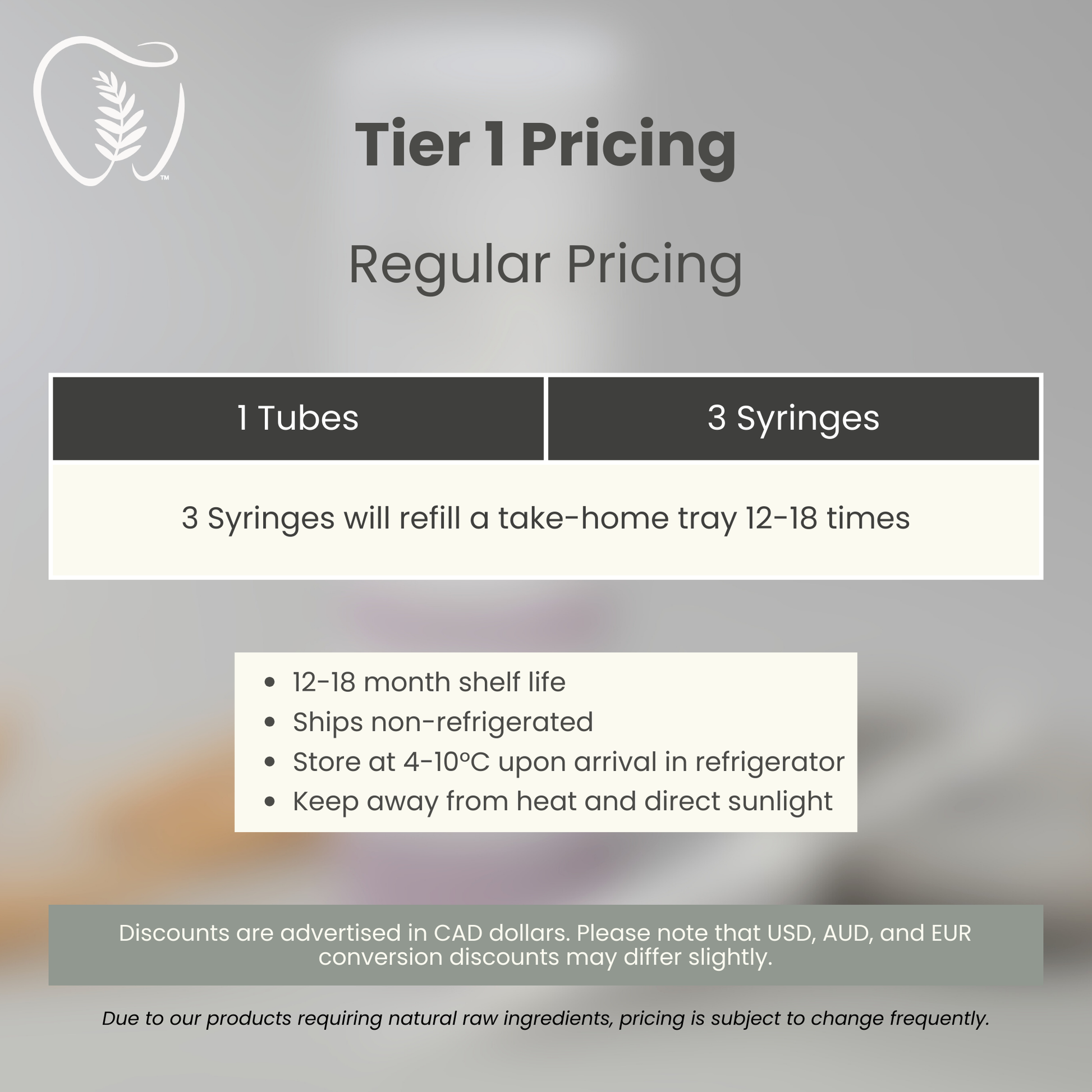- Each 3ml syringe provides: 4 tray fills= 12 full tray sessions per tube