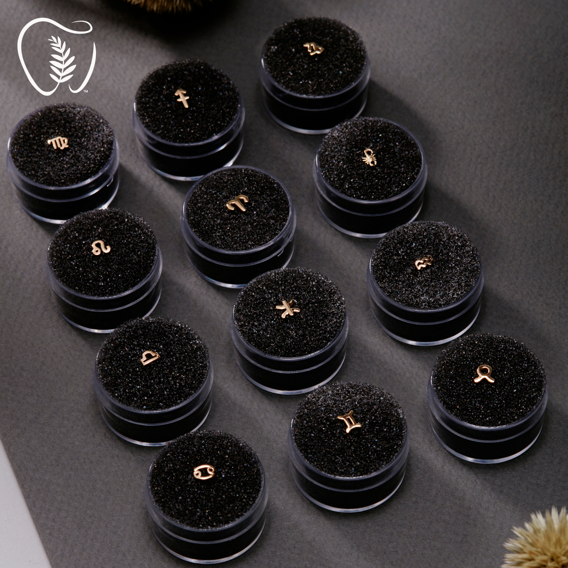 Take your tooth gem services to the next level with the 18K Gold Zodiac Tooth Gem Collection. These premium gems feature elegant 18K gold, sized at approximately 1.2-1.4mm for a sleek, polished look. This collection is designed to elevate your services by offering clients a personalized touch with their zodiac sign.